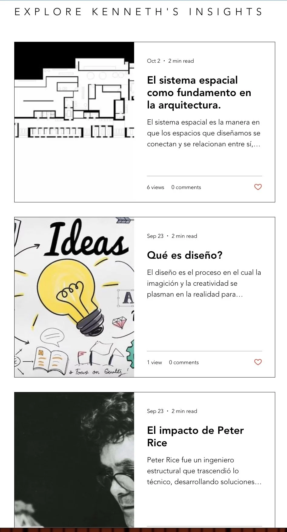 Me gustó especialmente cómo el minimalismo del blog refuerza la identidad de Kenneth. Hay coherencia entre su estética y su manera de comunicar: directa, ordenada y sin distracciones. Cada entrada parece pensada para guiar al lector con suavidad, como si el espacio digital estuviera diseñado para dejar que las palabras y las imágenes hablen por sí solas. Ese equilibrio entre forma y función refleja un entendimiento profundo del diseño como herramienta de expresión.