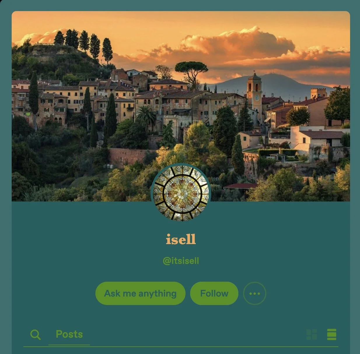 Visitar el blog de Tumblr de mi compañera Isell me pareció una experiencia muy inspiradora. Me sorprendió la forma creativa en que aprovechó esta plataforma, que muchas veces se asocia con lo informal, para construir un espacio visual coherente y lleno de intención. Su manejo del formato, la disposición de las entradas y la manera en que combina texto e imagen revelan una mirada personal y una sensibilidad estética muy afinada.